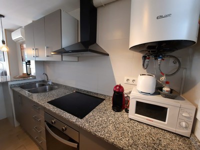 | Excelente apartamento de 2 dormitorios con licencia turistica en el Eixample de Salou, muy proximo a la Plaza Europa. La vivienda, esta reformada y situada en una segunda planta con ascensor, ofrece 56 m2 utiles. Se compone de dos dormitorios dobles, un bano moderno con ducha, cocina americana y una agradable terraza con vistas directas a la piscina comunitaria. El piso se entrega amueblado y equipado con aire acondicionado. La carpinteria exterior de aluminio con doble acristalamiento proporciona un optimo aislamiento termico y acustico durante todas las estaciones. Cuenta con licencia turistica. |